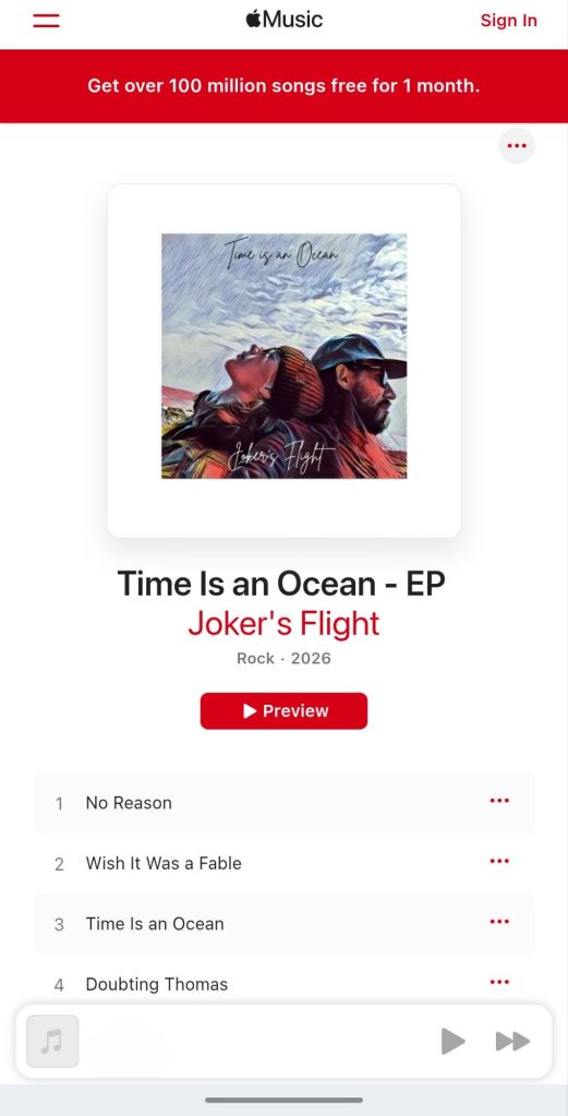 Joker’s Flight new record, Time is an Ocean, is now available in most digital formats.